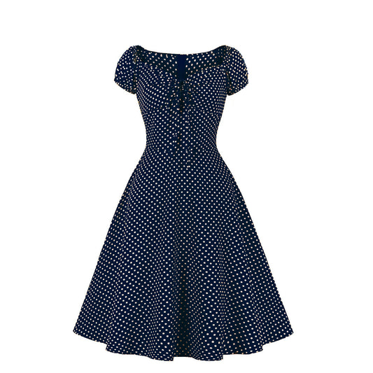 Women Vintage 1950s Dress Square Neck A-line Polka Dot Rockabilly Swing Evening Party Cocktail Dresses